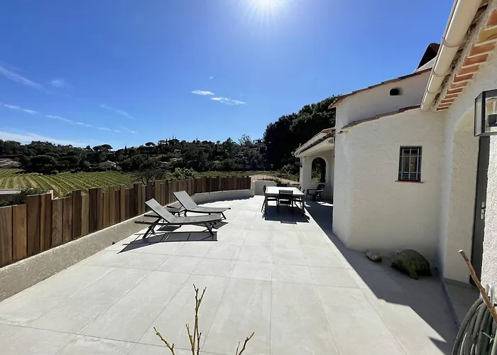 Вилла Maison La Croix-Valmer, 4 Pieces, 8 Personnes - Fr-1-726-5 находится в 3 км от центра Ла Круа-Вальме. В комнатах предоставляется телевидение, детекторы дыма и система климат-контроля, а на оснащённой всем необходимым кухне - холодильник, духовка и кухонная утварь.